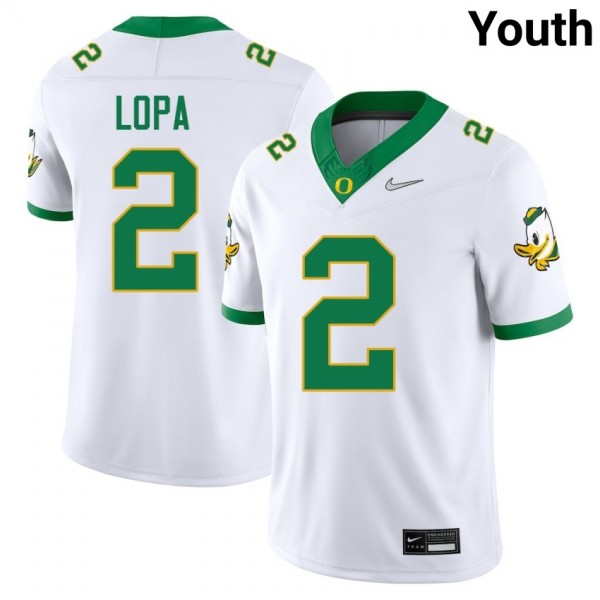 • #2 Kingston Lopa Oregon Ducks White Youth Jerseys 2025 College Football